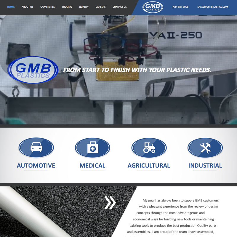Full width industrial manufacturing site incorporating high resolution video/images, and a custom built careers page.