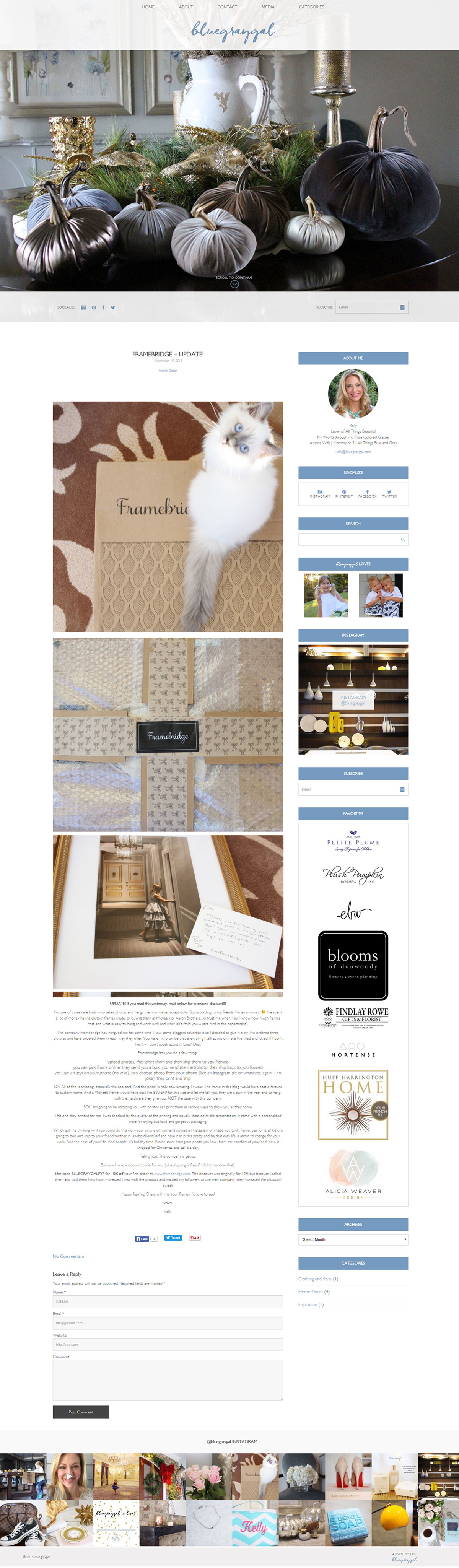 Kelly is a stay at home mom, with impecable style, and an eye for all things beautiful. She has a passion to document and share, and needed a website to showcase her experiences with family, shopping, decorating, etc. Kelly had several specific requirements for her website. The site needed to be in a blog format, had to integrate with her Instagram feed, as well as have space to display favorite brand logos, and sponsored advertising. It also had to look great on mobile devices.