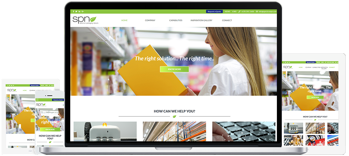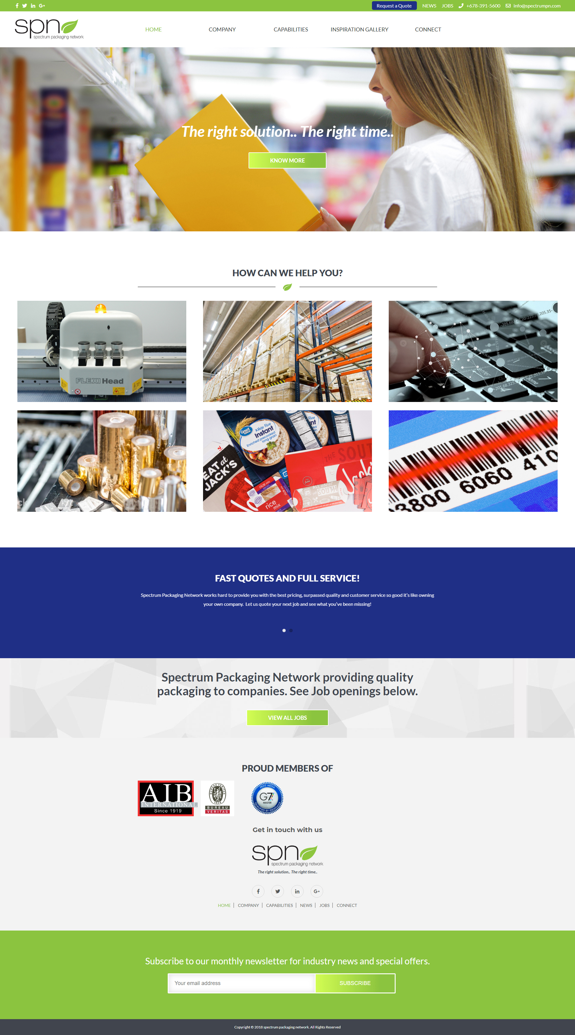 Spectrum Packaging Network is a specialty packaging, printing and marketing company whose clients include Jack Daniels, Hershey’s, Bridgestone Golf and Zaxby’s. This site features a unique “inspiration gallery” with filtering by category functionality, lots of colorful, high-res images with mouse-over animations to engage the visitor. We also built an animated timeline for displaying the company history milestones.